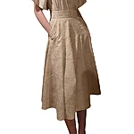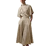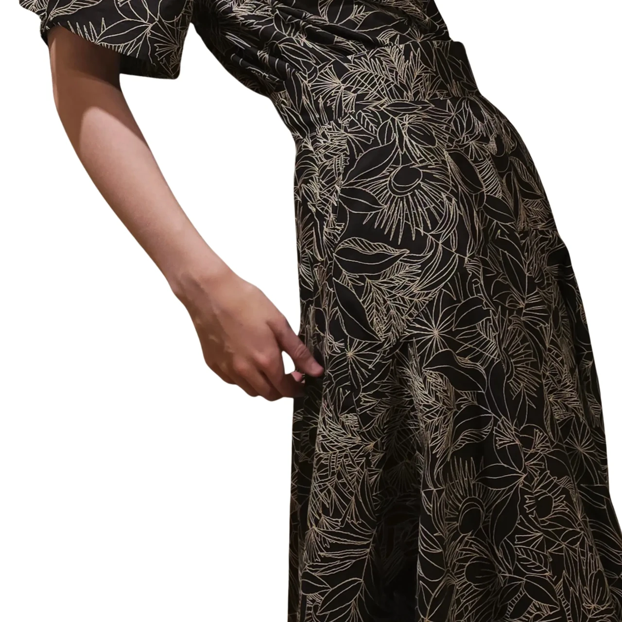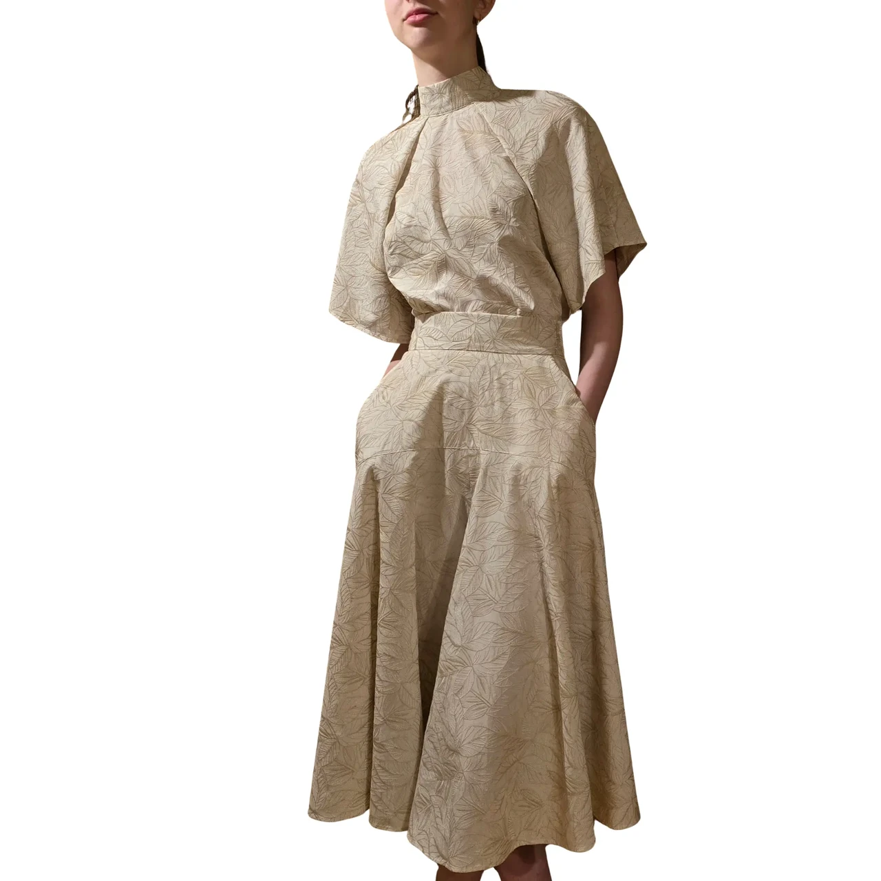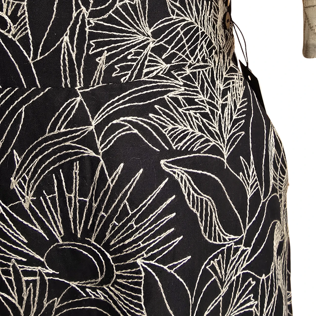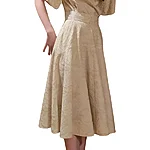 Wide skirt made of embroidered black cotton fabric or embroidered beige viscose fabric. Wide waistband. With pockets. Zipper on the left side. 3 buttons on the waist. Black skirt with thin lining, beige without lining. Length 82cm Black composition: 100%CO, lining 100%PA Beige composition: 100%VI Care: machine wash 30 degrees