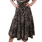 Tikitud mustast puuvillasest kangast või tikitud beežist viskooskangast lai paanidega seelik. Allääre ümbermõõt 4,6 meetrit. Laia värvliga. Taskutega. Lukk vasakul küljel. Värvlil 3 nööpi.